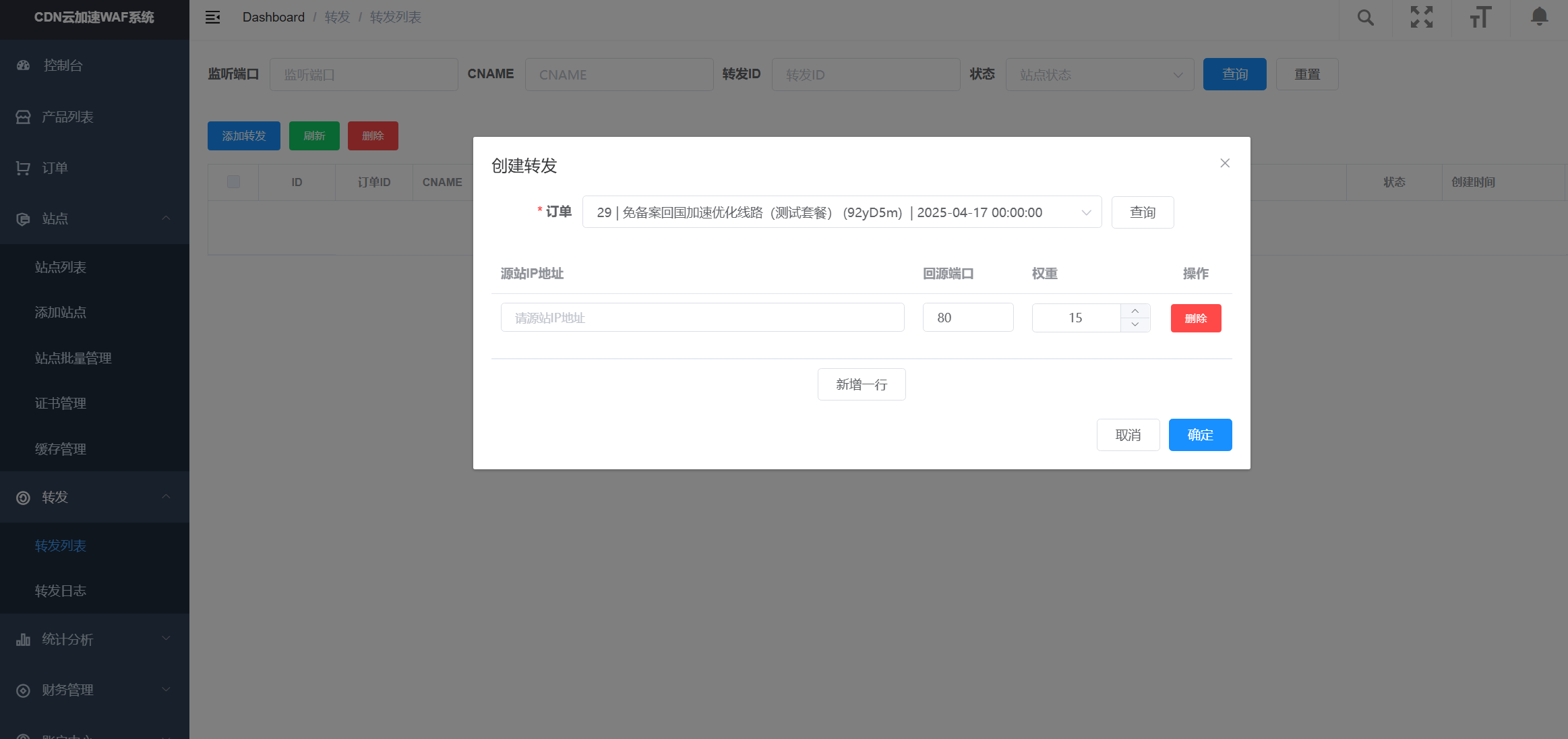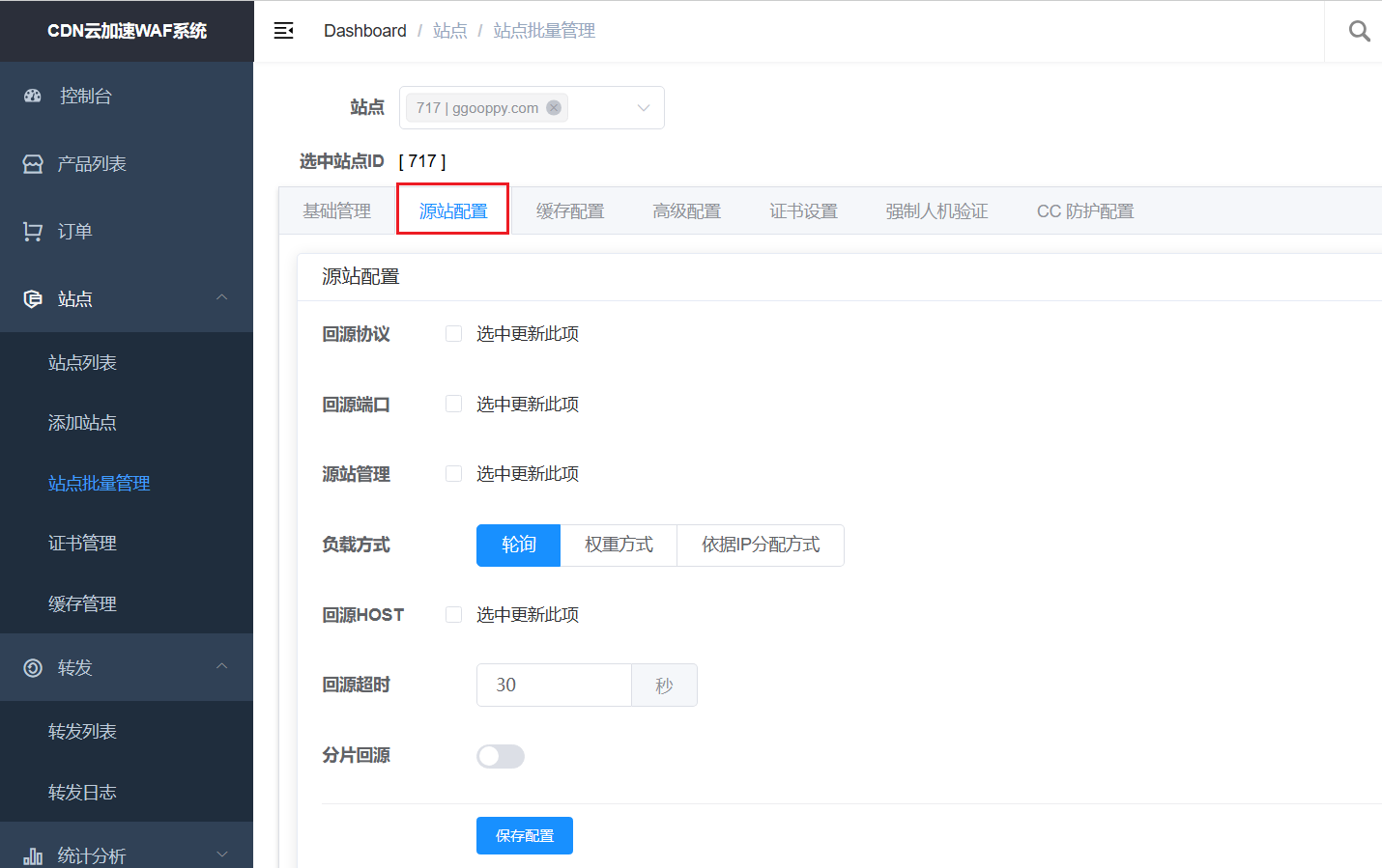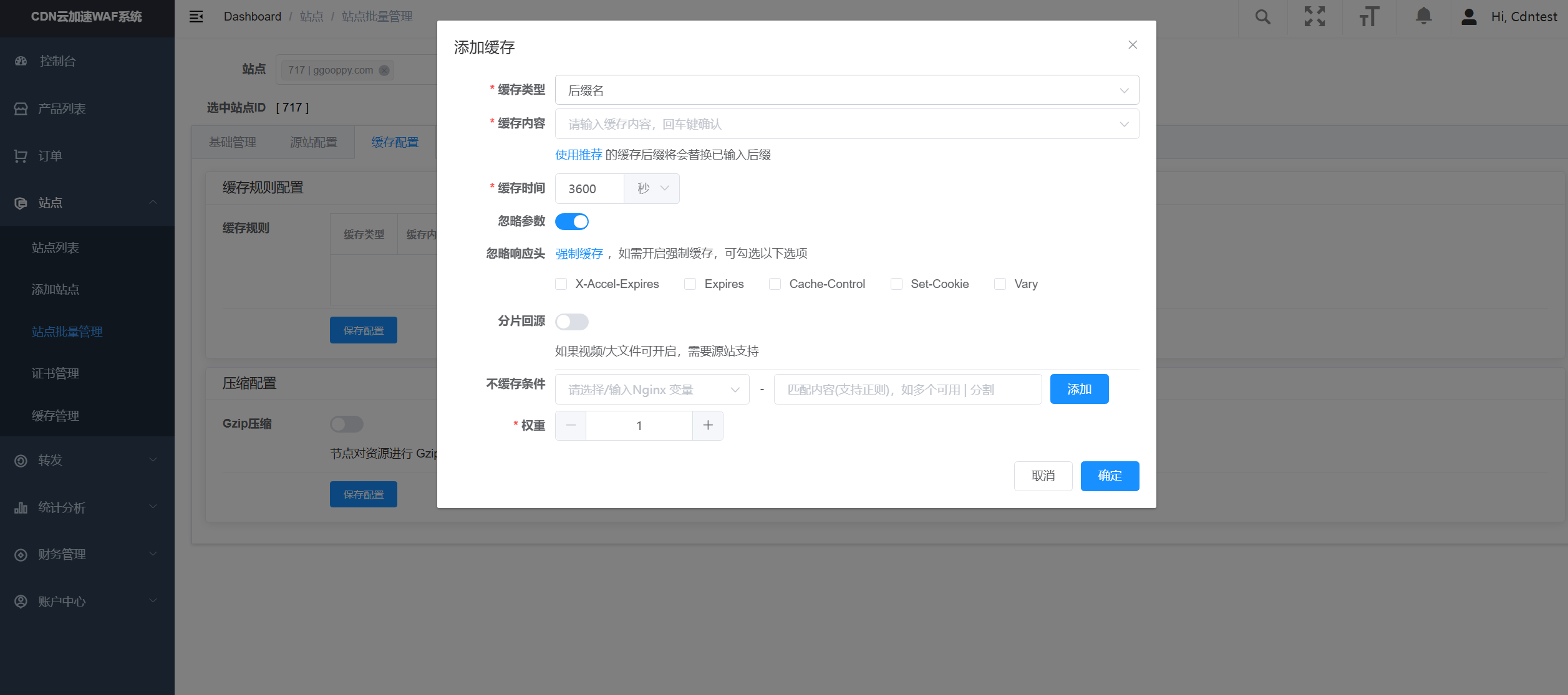 - 添加源站:格式为IP加端口,若不填写默认为80