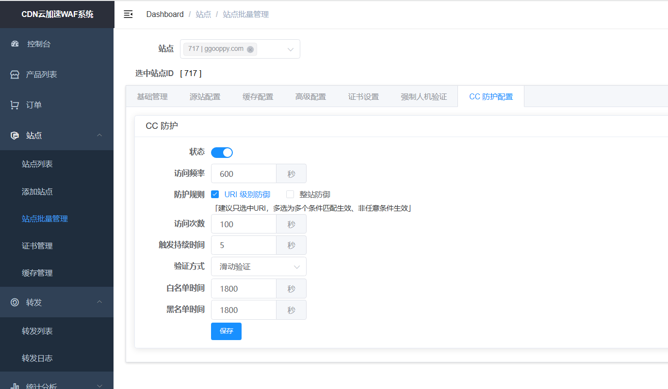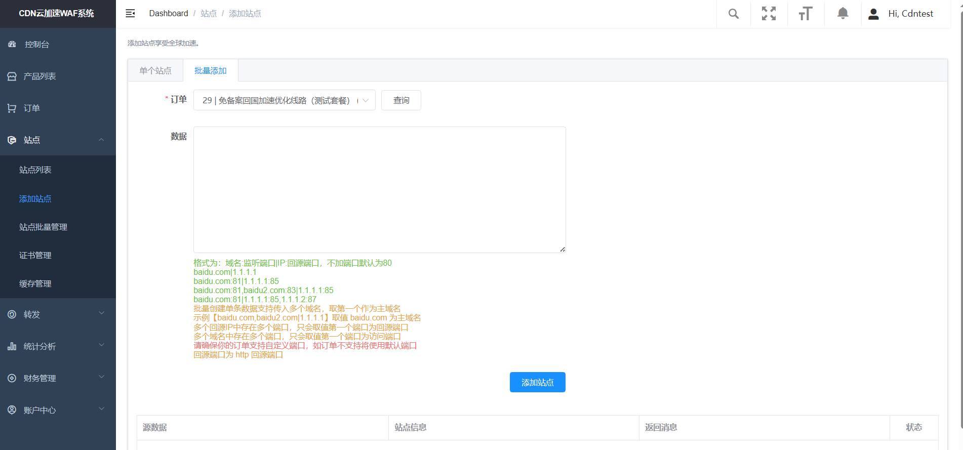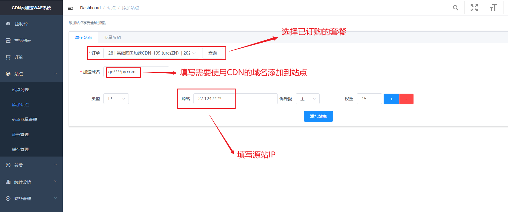 - 添加源站:格式为IP加端口,若不填写默认为80