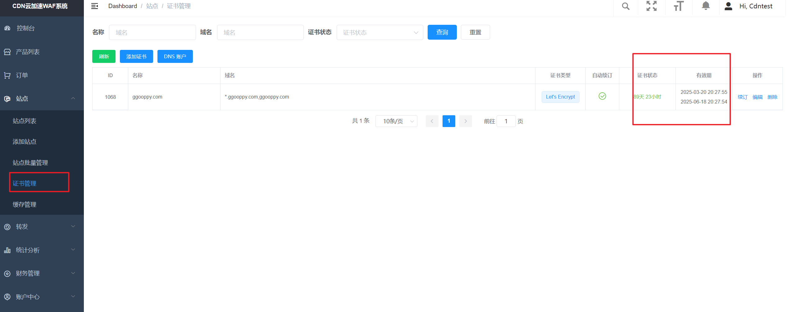 站点自动生成的cname值 |