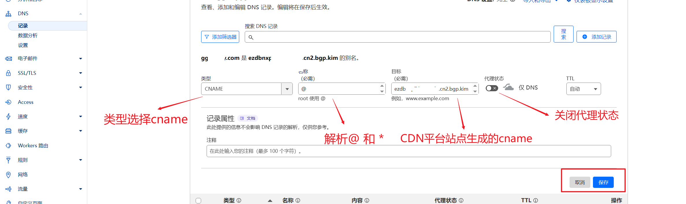 📢CNAME会自动生成,在域名解析时务必要将域名解析到CNAME。常规格式为:主机记录@或* 记录类型CNAME 记录值:cname