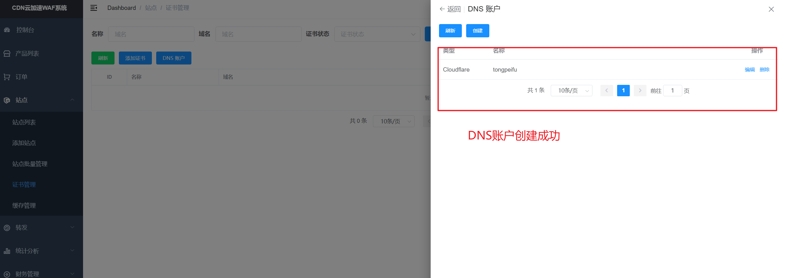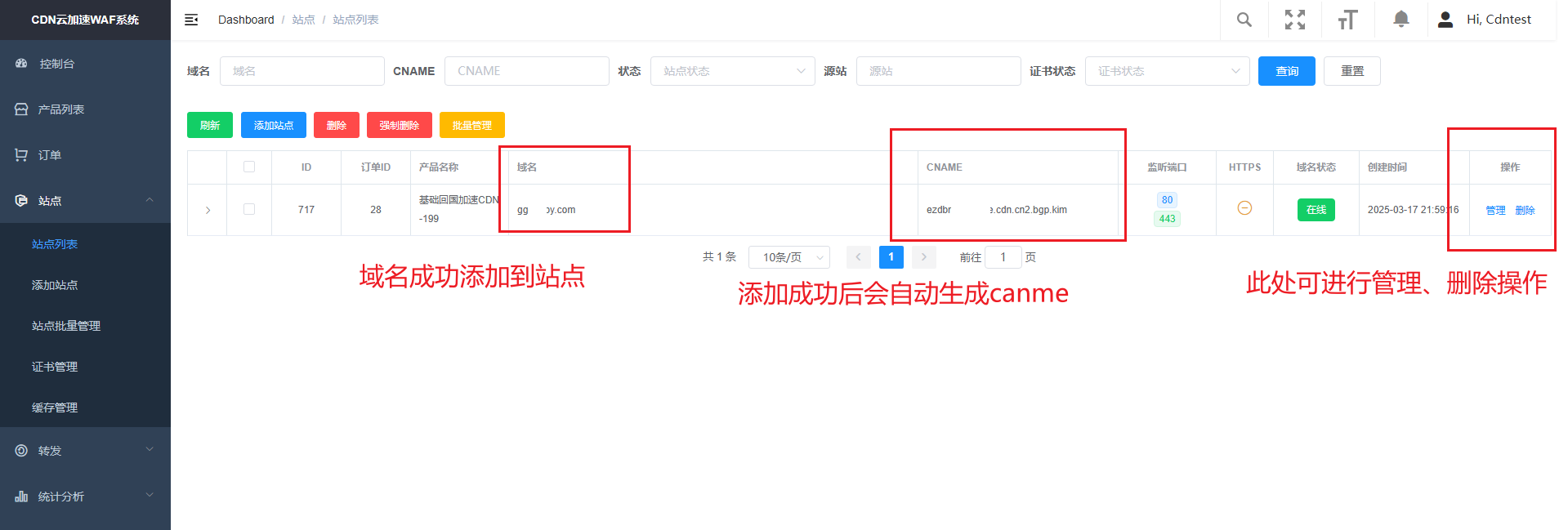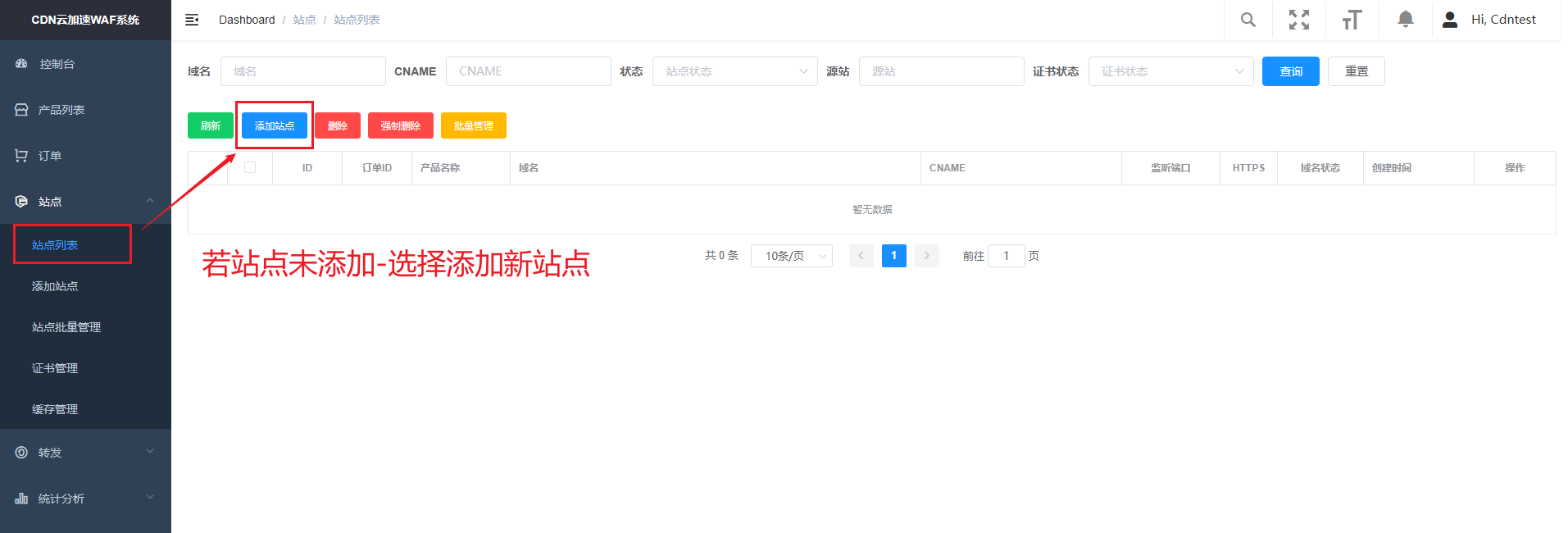 💡添加成功后返回站点列表,可以看到刚刚所添加的站点