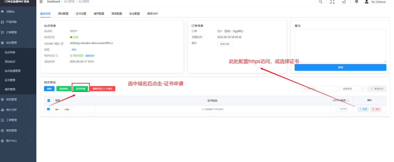 - 加速域名:添加到站点的域名